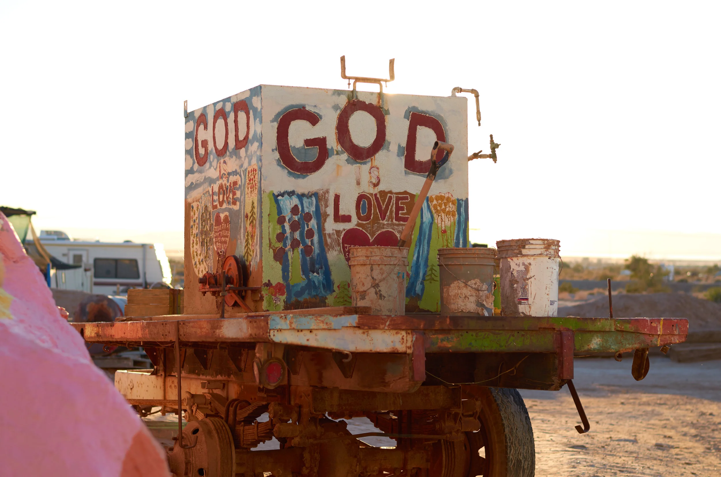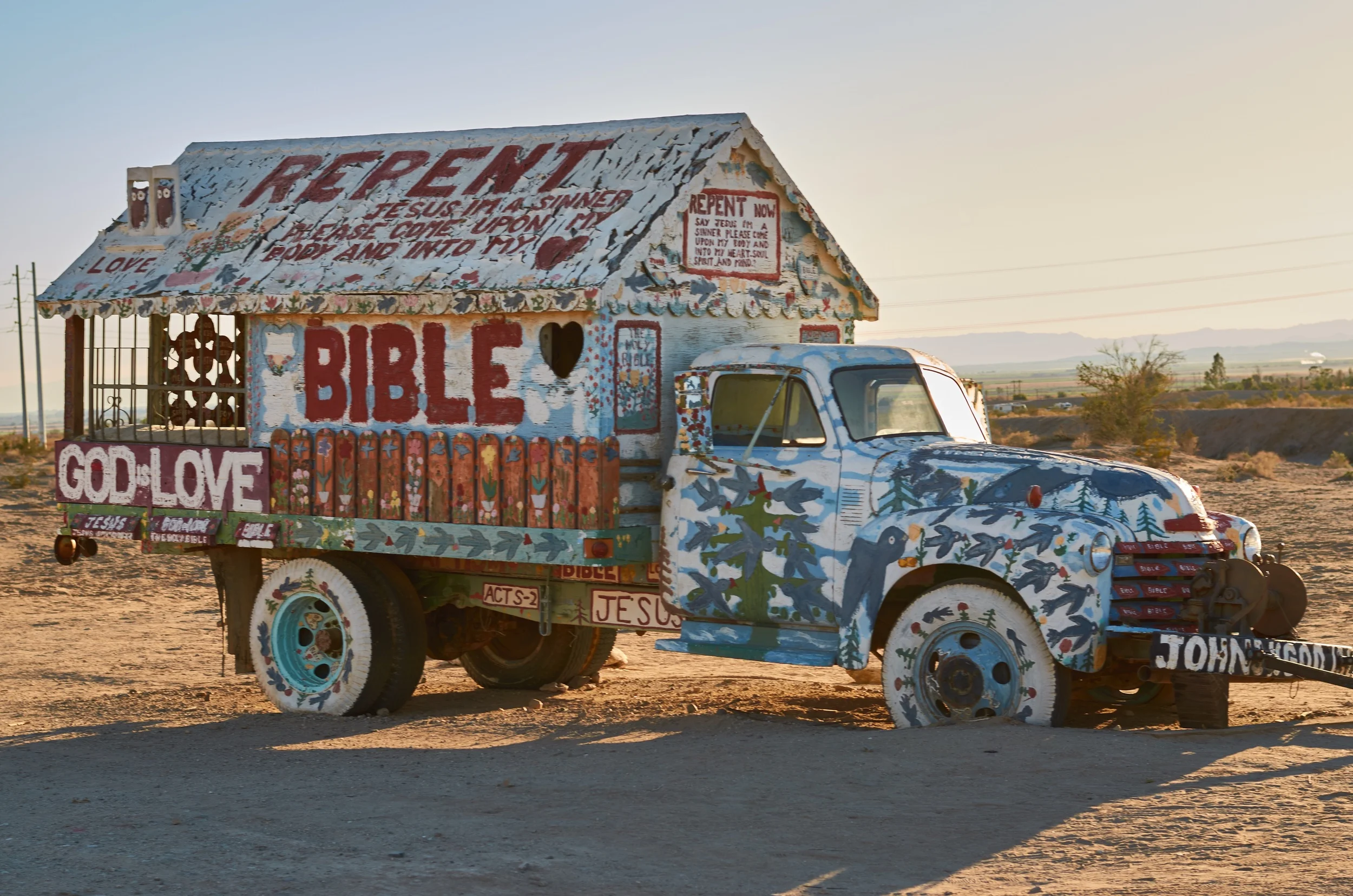 Leonard Knight’s Salvation Mountain should be one of the wonders of the world. It is a masterpiece dedicated to his love for God. I do not belong to a particular religion, but I believe deeply in the power of God. I have experienced and witnessed the incredible things humans can accomplish when they are devoted to a higher being. People are able to accomplish what would seem impossible to the nonbeliever when they are devoted to serving God. Salvation Mountain is one of them.